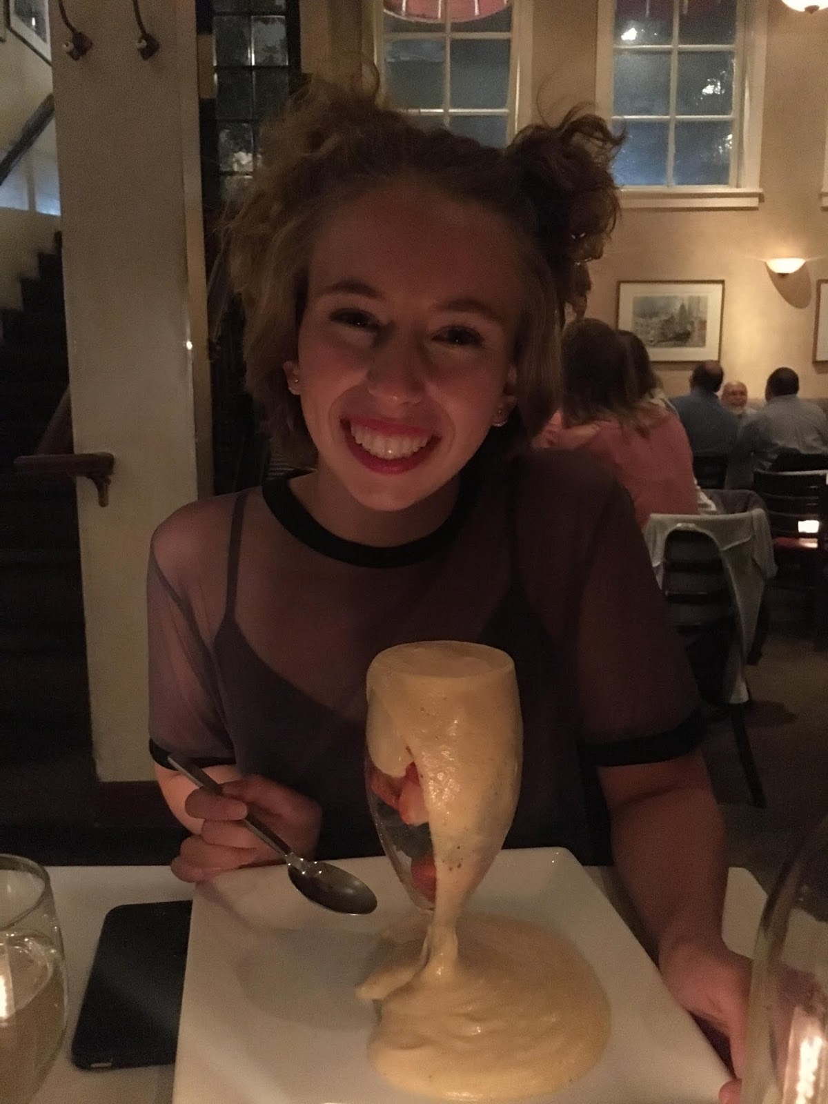 Fino, an Italian restaurant near JT's apartment. We mainly went for the dessert, but enjoyed a pizza before treating ourselves. I tried zabaglione, an Italian custard served with fruit. What a great way to end a great day.